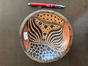 ジンバブエのブースでは伝統的な柄が入った木製のお皿を買いました。