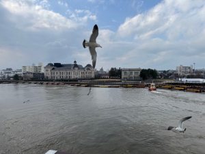出港してからウミネコ達がずっと佐渡フェリーを追いかけてきます。乗客達が投げるかっぱえびせんをナイスキャッチします。ウミネコ用にフェリーは何ケースもかっぱえびせんを仕入れていました。